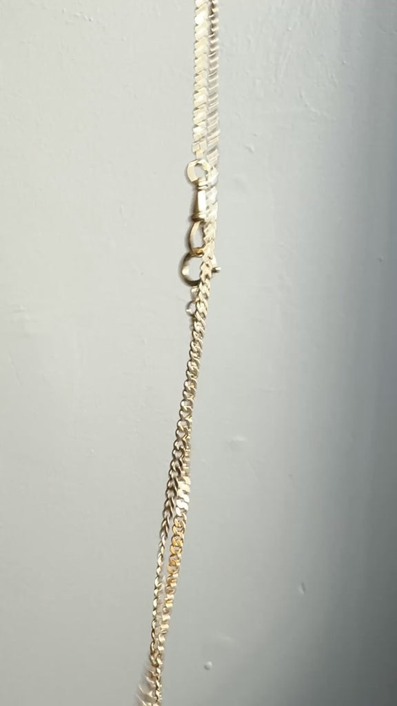 An elegant, pressed curb style antique watch chain - and the best part is that she is long enough to wear as a necklace! You can get creative and attach charms or wear as a lariat. See my sample photos.
