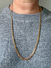 Necklace measures 27.5 inches long with a graduated width of 2.3-4.8mm. Chain closes with a secure spring clasp. Marks are present but illegible due to age. Condition is excellent with normal age related wear. Dark areas are just reflections from the room
