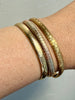 The omega link style is made by assembling gold plates on a wire or woven mesh. This style is flexible yet contained, which I love - it makes for a bracelet that feels in between a rigid bangle and a chain. The buoyant structure adds special interest to a bracelet stack.