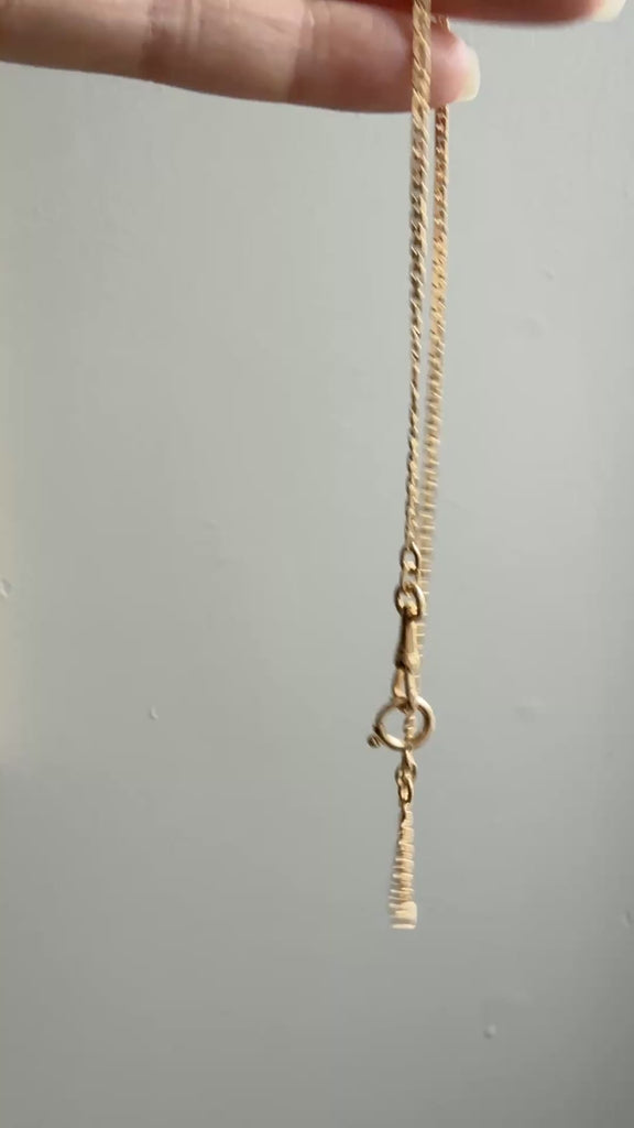 18k Gold Antique Virola Link Watch Chain Front Clasp Necklace - 15.5 inch length