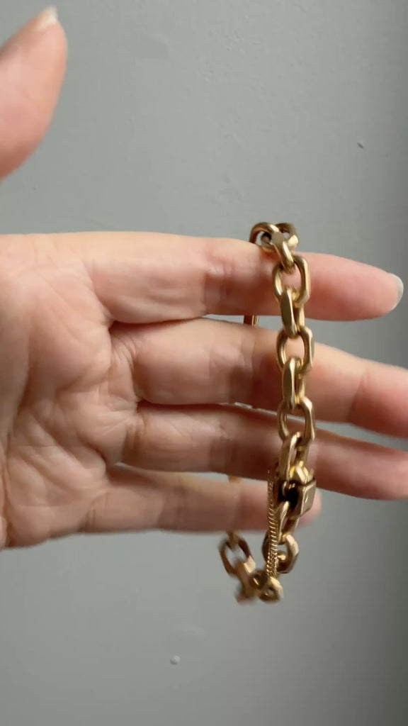 With this one you get the best oversized old gold bracelet made of 18k gold links. Links are thick walled, yet hollow, so she is super comfortable to wear (and won't build your biceps).
