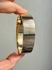Unique! Architectural Wide 14k Gold Hinged Bangle with Linear Grooves - 6.9 inch oval interior circumference